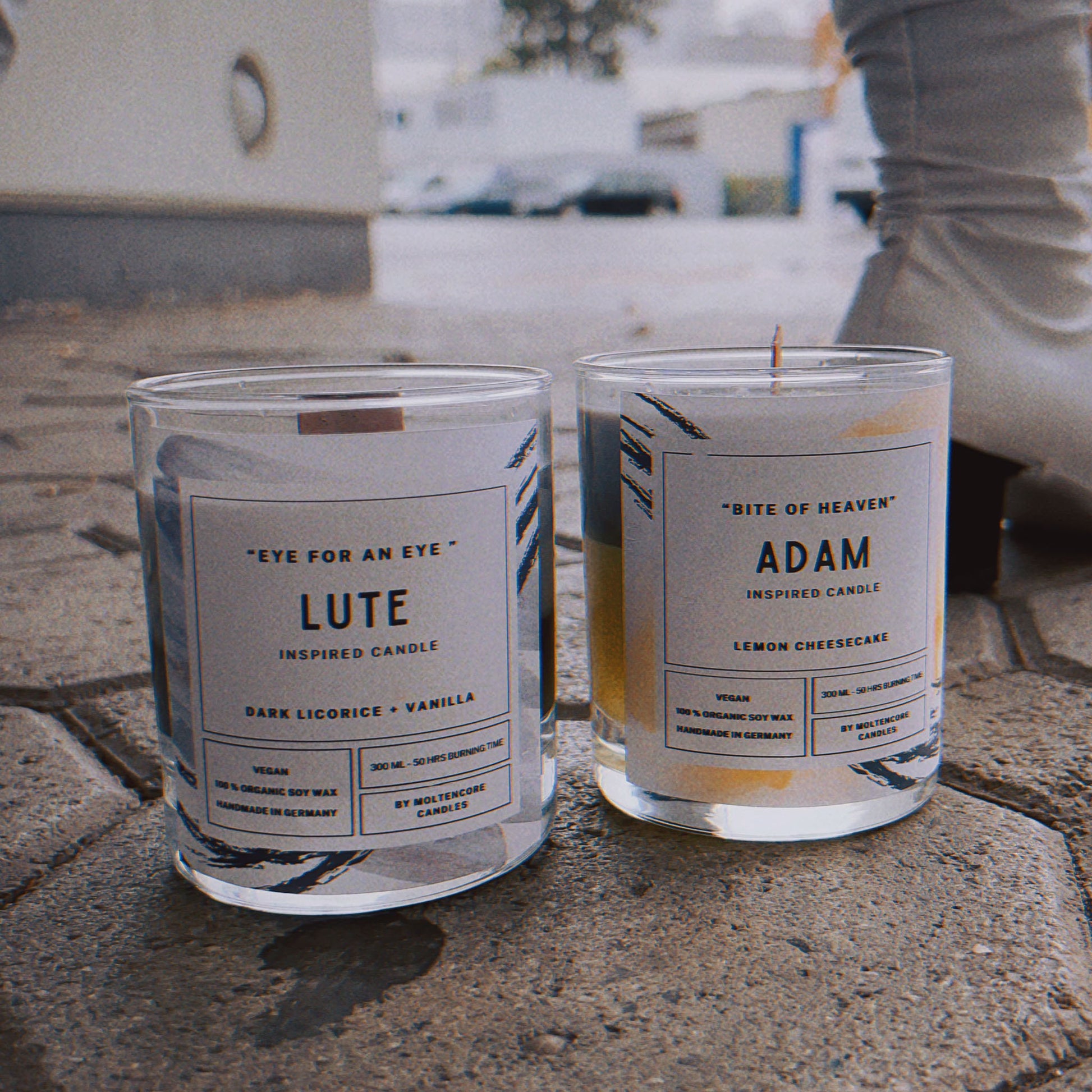 It is also possible to get them with a Wooden or a cotton Wick. Both are made from sustainable and high-quality materials in Europe.