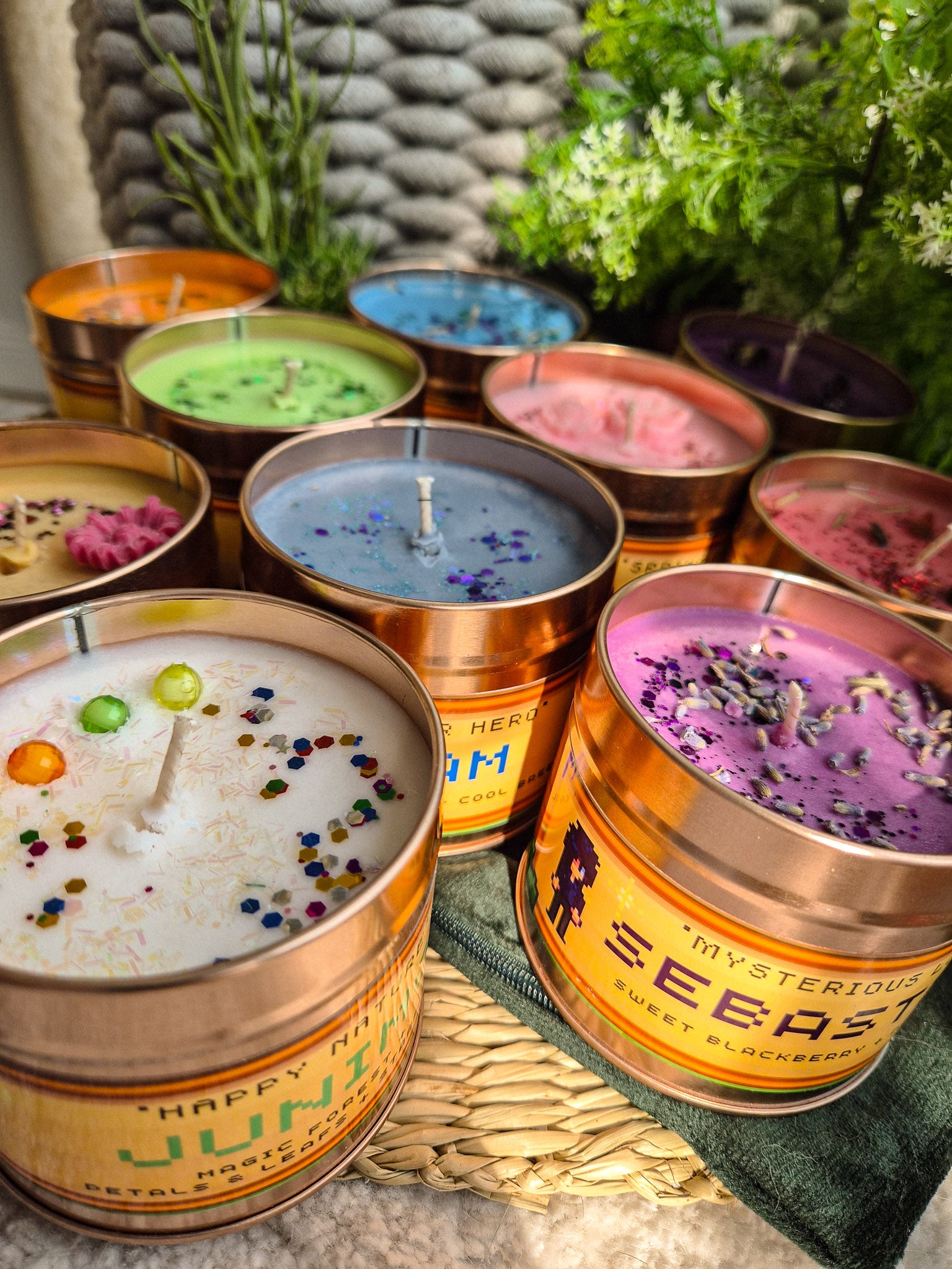 Our scented candles are made out of natural soy wax and only with premium essences, decorated with dried flowers and crystals, in a jar or glass that can be reused after burning! The wax is gluten Free, Phthalate Free, Non-Toxic, Cruelty Free!