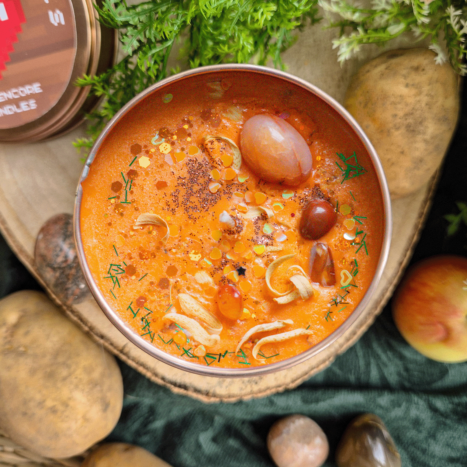 Our scented candles are made out of natural soy wax and only with premium essences, decorated with dried flowers and crystals, in a jar or glass that can be reused after burning! The wax is gluten Free, Phthalate Free, Non-Toxic, Cruelty Free!